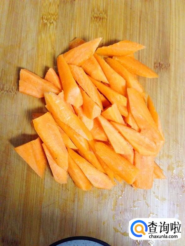 胡萝卜清洗干净后,去皮并切成滚刀块。