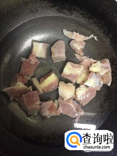 锅中加入适量水,并加入1小勺料酒,把处理干净的牛肉块放入锅中,汆水。