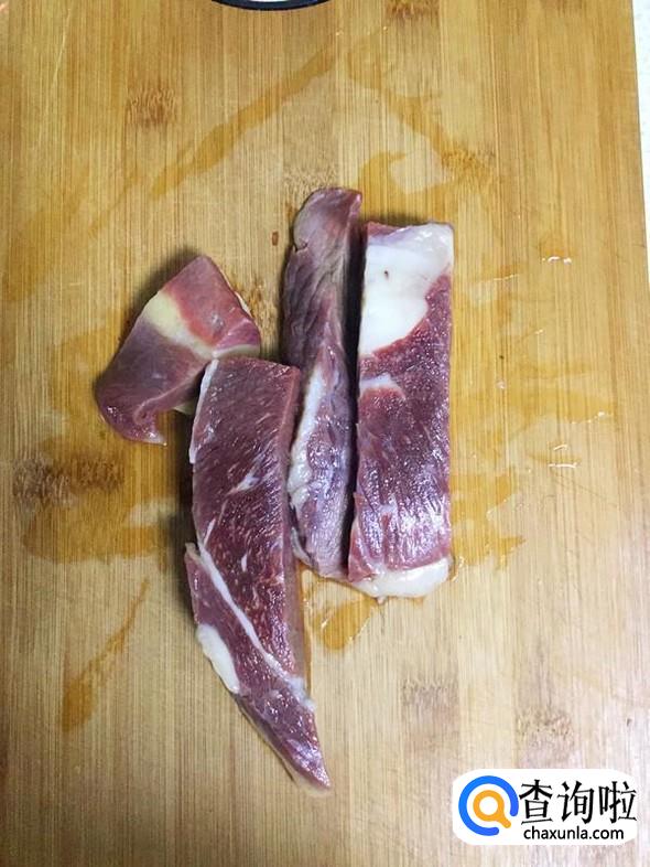 牛腩解冻后切成条状。
