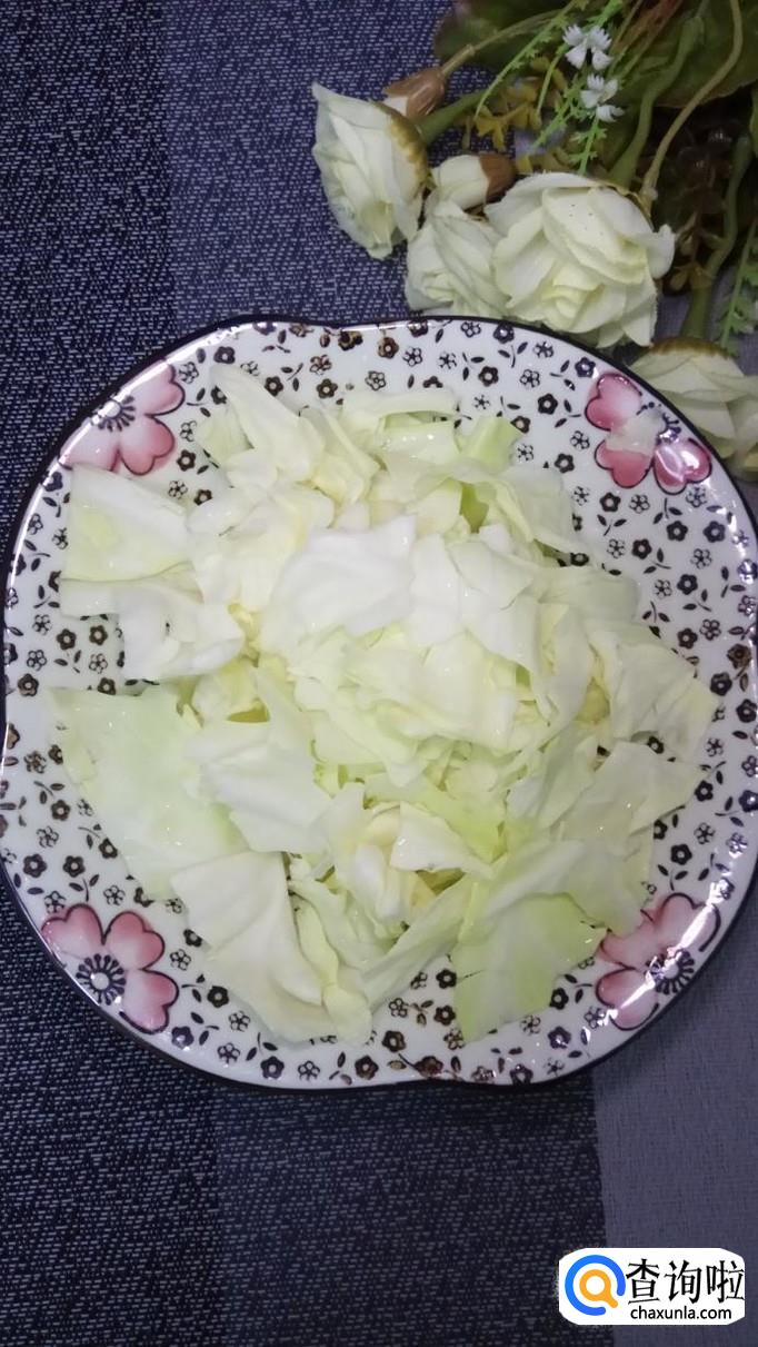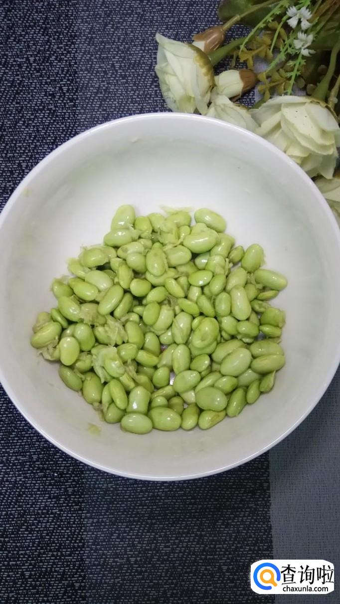 准备适量毛豆,去除外皮,洗净后控干水分,再准备适量包菜,洗净后用手撕成片,放入盘中备用。