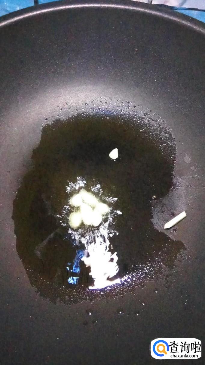 将大蒜切成片,炒锅中放入适量油,油热后将大蒜放入锅中爆香。