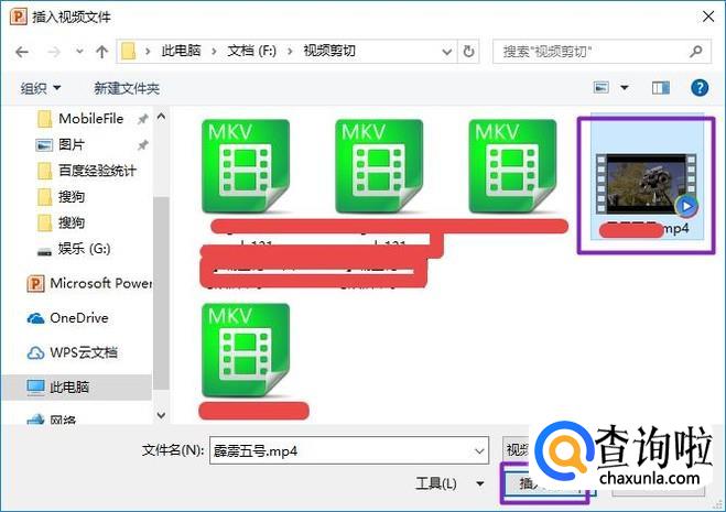 弹出的界面,我们找一个视频,然后选中它,之后我们点击插入就可以了,还是比较简单的,相信大家现在都会插入视频了。