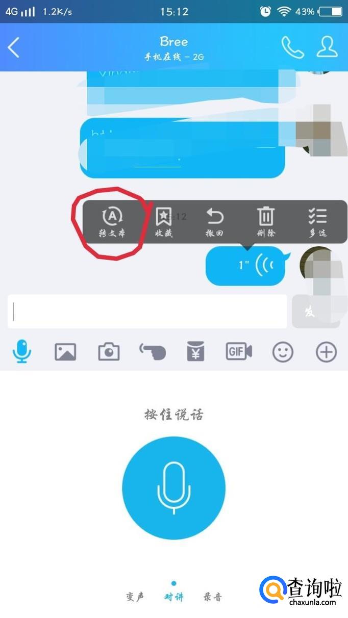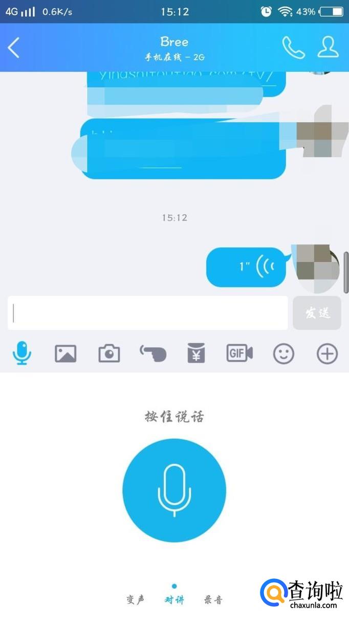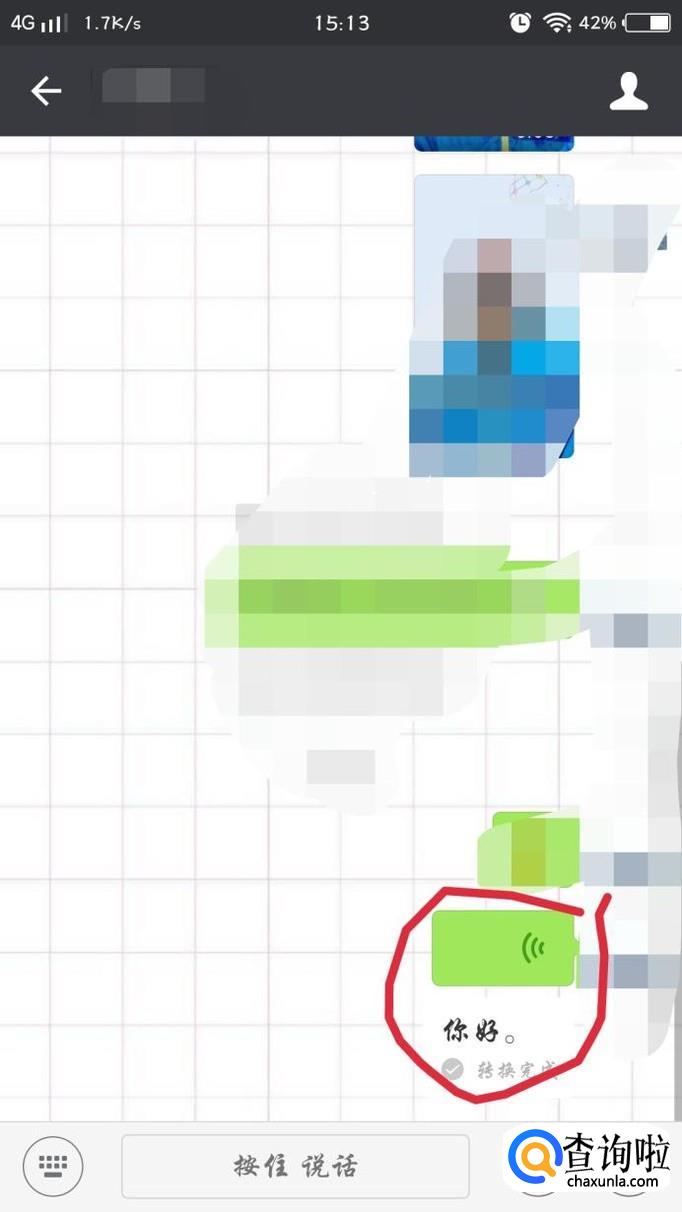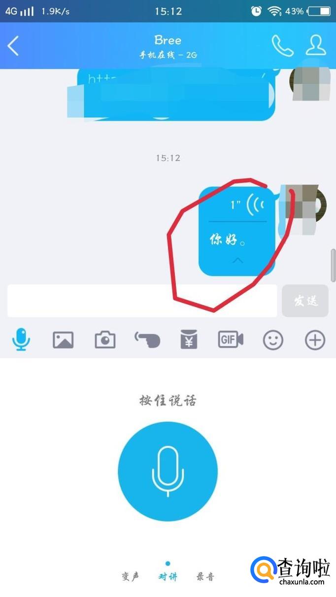 点开和一个好友的聊天界面。找到需要转换的语音或者自己发一条语音。