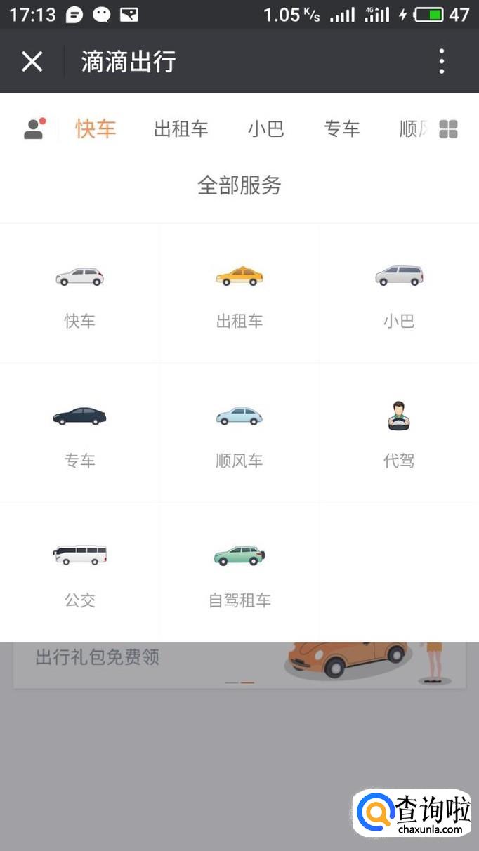 进入主页后找到滴滴出行,然后点击打开滴滴出行。
