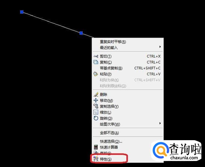 要想以原有线条长度显示为虚线,我们需要调整线型比例,选中线条后,右键单击,选择“特性”。