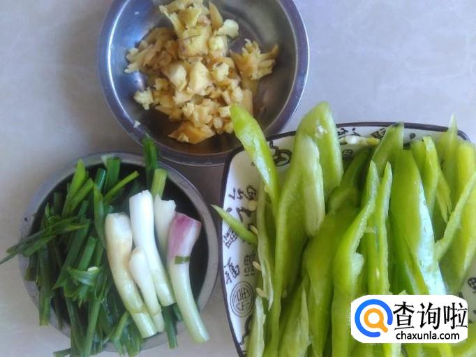 青椒、香葱切成丝,姜蓉准备好。