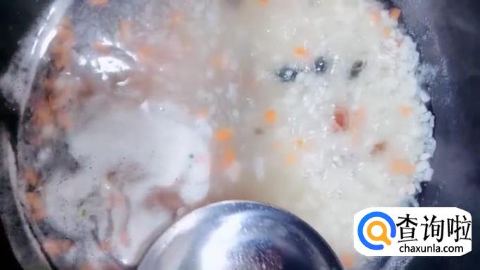 材料:剩米饭、皮蛋、胡萝卜、猪肉糜、香菜、山药