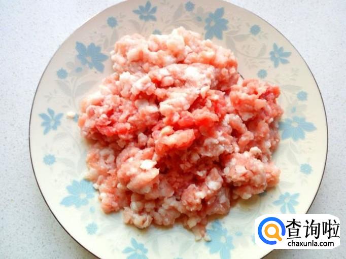 肉用水冲洗干净,控干水分,切成碎末。我用的是购买现成的肉馅。