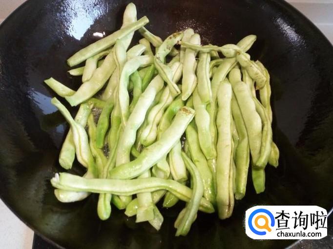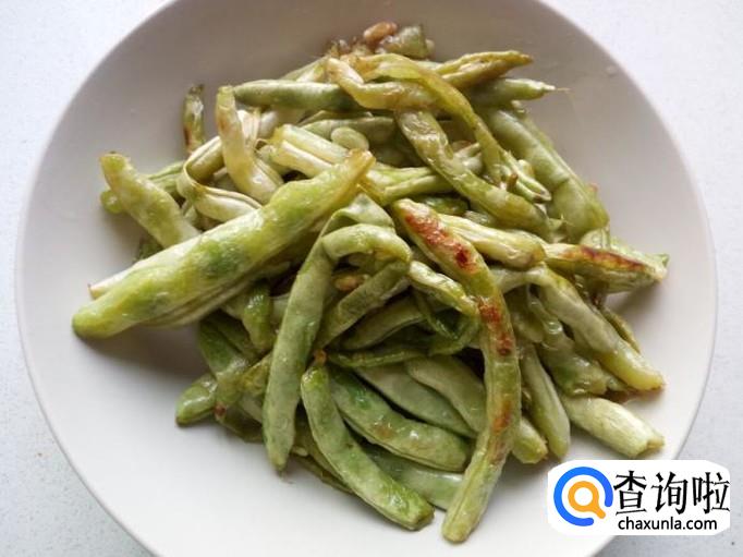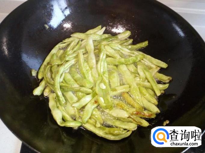 炸至芸豆八分熟,外表起皱时捞出,沥油。