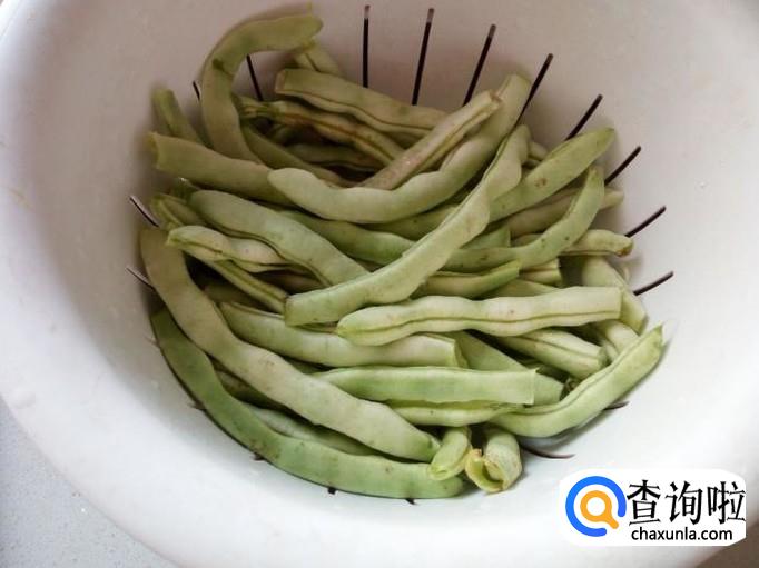 芸豆用手掐去两头,比较长的掰成半,然后用水清洗干净,控干水分。