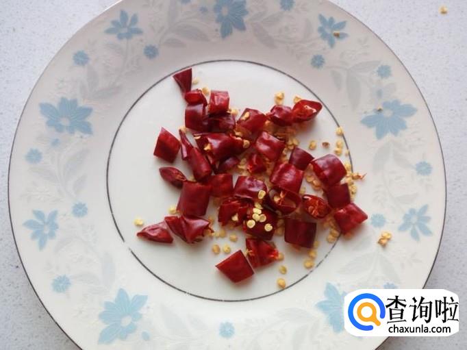 红干椒,用水清洗干净,控干水分,切成小段。切好葱,姜,蒜,备用。
