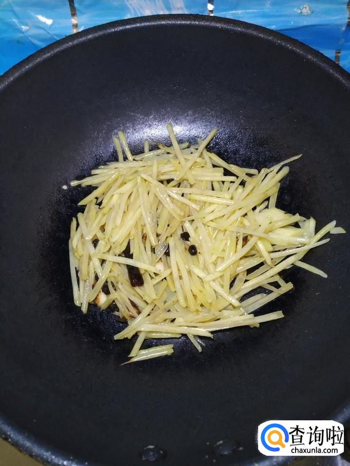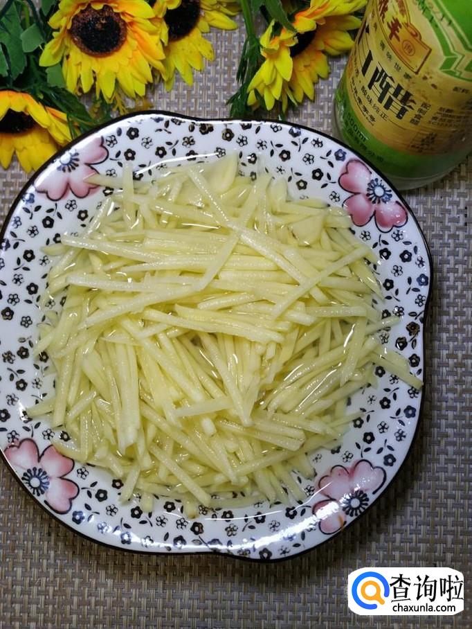 准备适量土豆,用清水洗净后,切成比较细的丝,用清水洗去淀粉,然后放入水中,加入适量白醋,泡十分钟左右,这样土豆不容易炒烂。