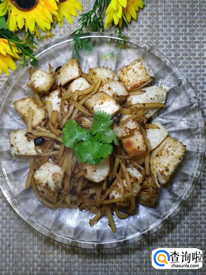 土豆丝,馒头适量,香菜适量,白醋适量,大蒜适量,干辣椒适量,盐适量,鸡精适量,五香粉适量,生抽适量,豆豉适量。