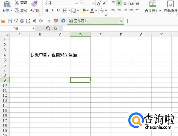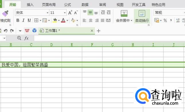 然后如图,输入一条内容较长的文字,一个单元格无法容下,需要进行调整。