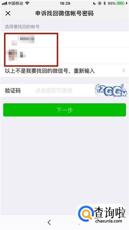 然后选择你想要找回的账号,如下图所示。