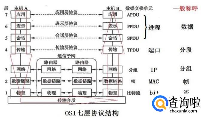 掌握OSI/RM分层形式,也称为开放系统互联参考模型,从上往下分别是应用层、表示层、会话层、传输层、网络层、数据链路层,以及物理层,前四层是高层范围,是用来处理数据的,后三层则是底层,用来通信,最简单的物理层就是指我们平常提到的网线、光纤。