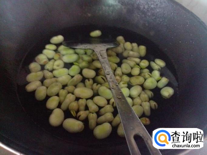 然后,捞出胡豆置于锅中,不停进行翻炒。