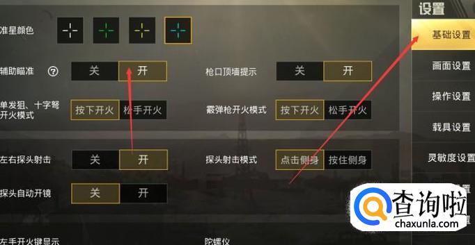 进入之后找到基础设置,然后点击进入,进入之后,你会看到准星的选择。如下图