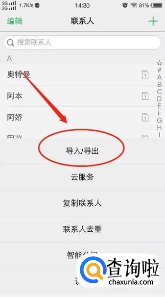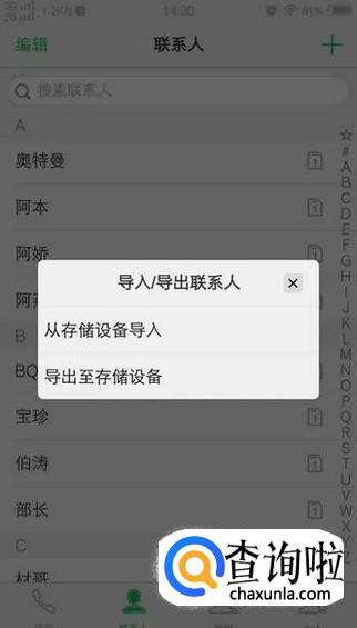 手机打开联系人-点击菜单键-导入/导出-导出至存储设备