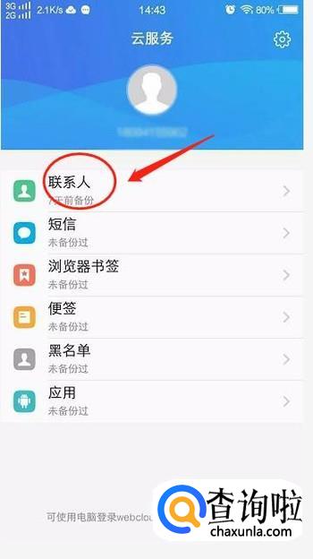 想要恢复的话,先打开云服务-点击联系人