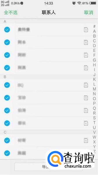 单独选择备份的联系人或全部选中(打勾即选中),点击下方导出按钮,备份联系人,完成后点确定