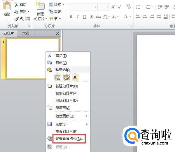 弹出的界面,我们点击设置背景格式;