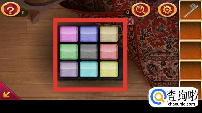 点击密码锁上的红色方块,它会自动显示下一个颜色方块的位置,继续点击,直到所有方块颜色被点亮,密码锁解开,获得另一半钥匙碎片