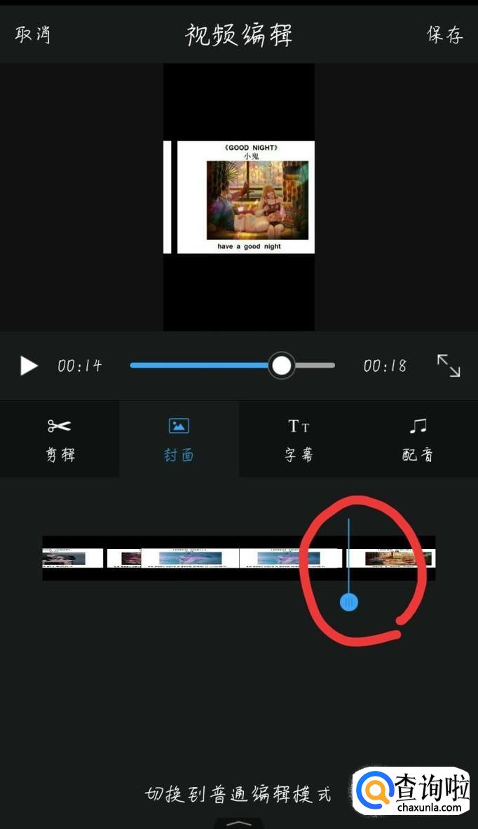 你还可以选择视频封面:如图点击“封面”,然后拉动进度条,选择你喜欢的视频封面。