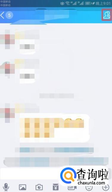 进入QQ群后,我们点击右上角的按钮;