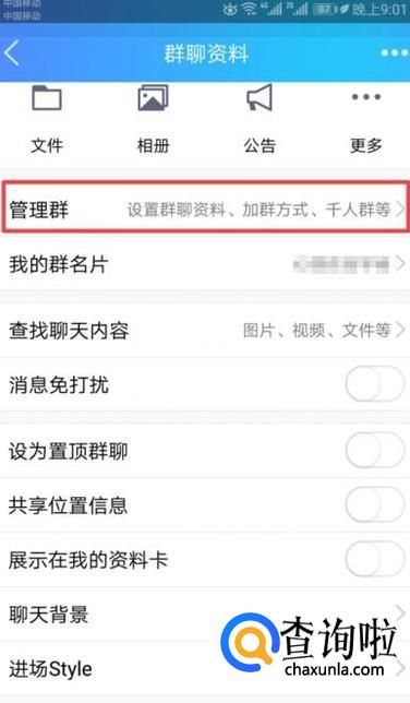 弹出的界面,我们点击管理群;