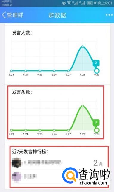 弹出的界面,我们就可以看到发言条数和发言排行榜了。
