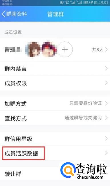 弹出的界面,我们点击成员活跃数据;