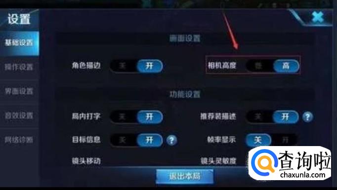 在游戏设置中,我们把相机高度调为高,然后其他设置根据个人的适应程度。