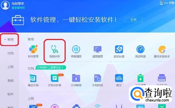 在“常用”选项卡内找到电脑诊所,点击进入。