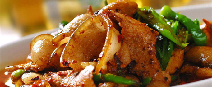 1、回锅肉:将猪肉先焯水,切成块状,放入热油锅中,翻炒倒入生抽、老抽调色、拍扁蒜头、生姜放入翻炒,放入水50g,加盖煮20分钟即可上碟(如果喜欢吃辣的,可以放入青椒一次炒)。