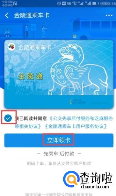 之后我们勾选上图示中的勾选,然后点击立即领卡;