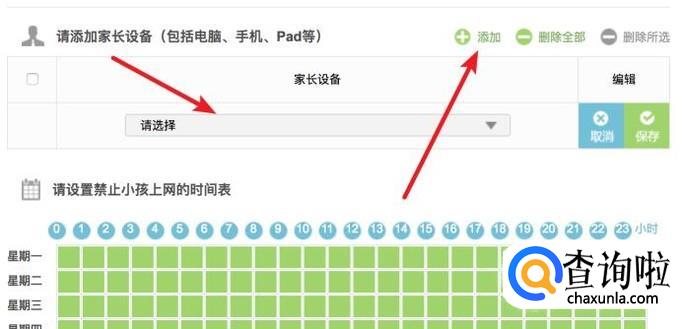 然后点击上方的添加设备,把自己的设备和家人的设备设置为家长设备,就不会受上网限制的影响了,其他的设备,就算连上了我们的路由器也是上不了网的。