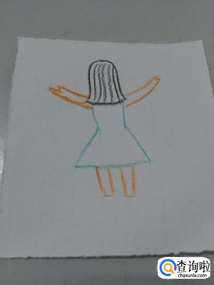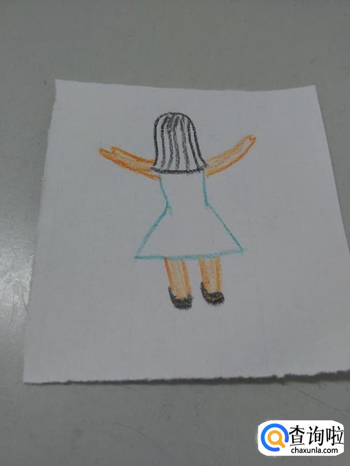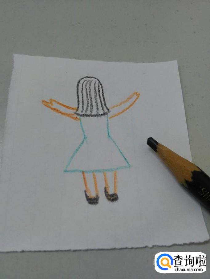 最后,用黑色轻轻地涂头发,长发女孩的背影就画完了。