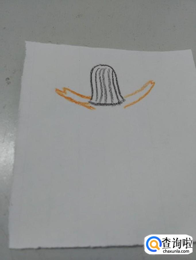 先用黑笔在纸上画一个钟的形状,表示女孩的长发轮廓。