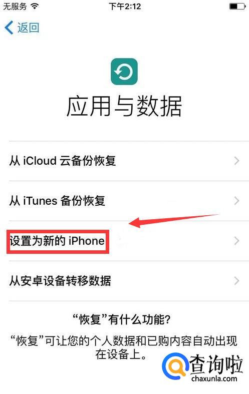 设置为【新的iPhone】,然后Apple ID账号和密码的设置依然跳过,我们稍后再设置。