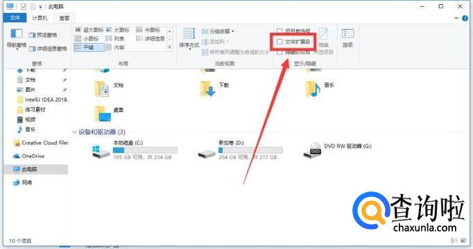 如图,将“文件扩展名”复选框勾选。