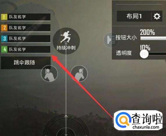 进入之后,将开火键移动到左上角,然后将按钮放大最大,将透明度设置为最低,如图所示。