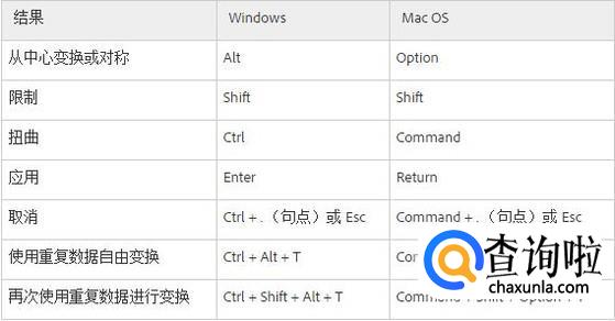 用于变换选区、选区边界和路径的快捷键