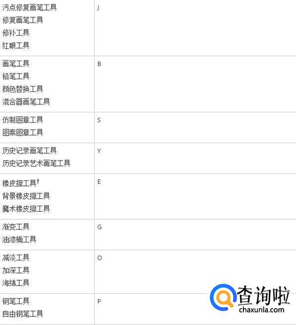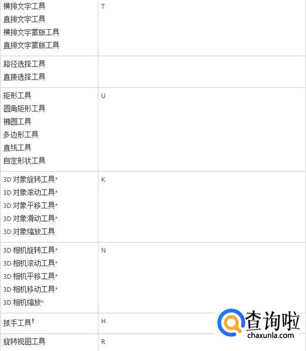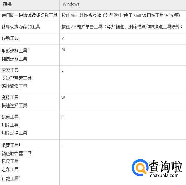 用于选择工具的快捷键