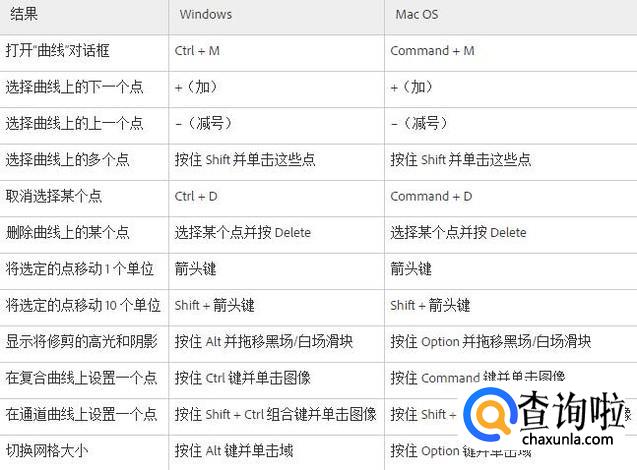 用于曲线的快捷键