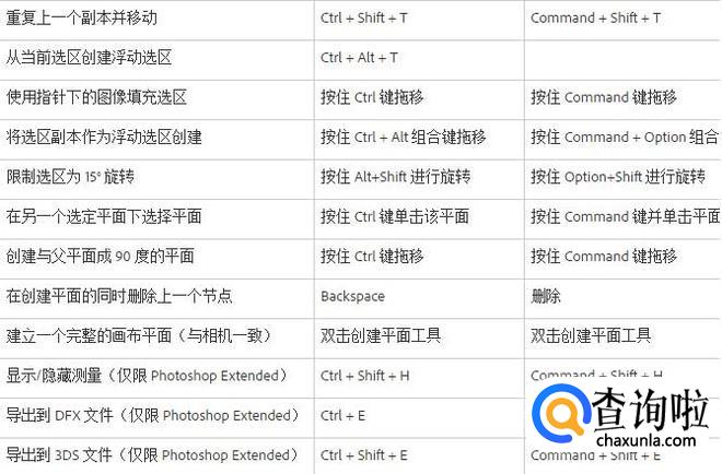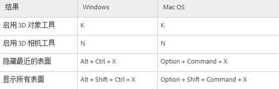 用于 3D 工具的快捷键 (Photoshop Extended)