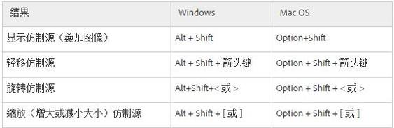 用于仿制源面板的快捷键