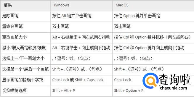 用于画笔面板的快捷键
