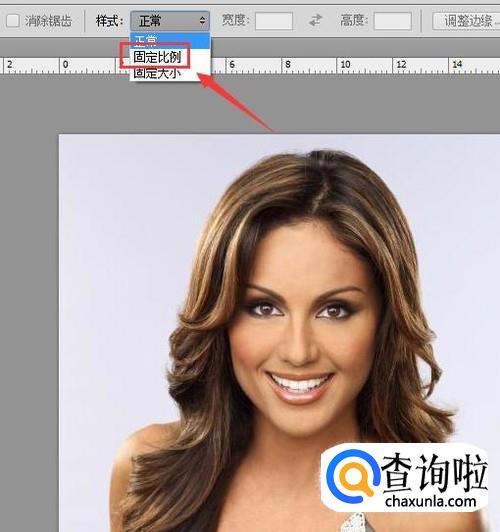 选择矩形选框工具在属性里找到样式选项,点击该选项在其下拉列表里找到固定比例选项,如图所示: