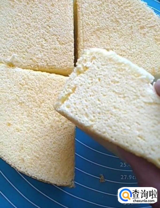 最后取出脱模,用刀切成块,美味的蛋糕就制作完成啦!